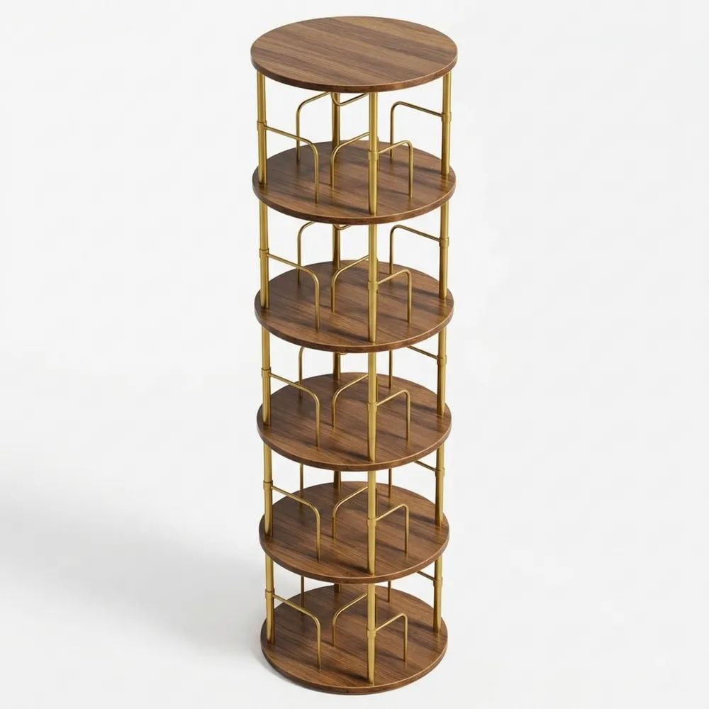 Drehbares Holzregal mit 5 Ebenen, 45x45x160 cm, Vintage-Braun, für Bücher und Dekoration