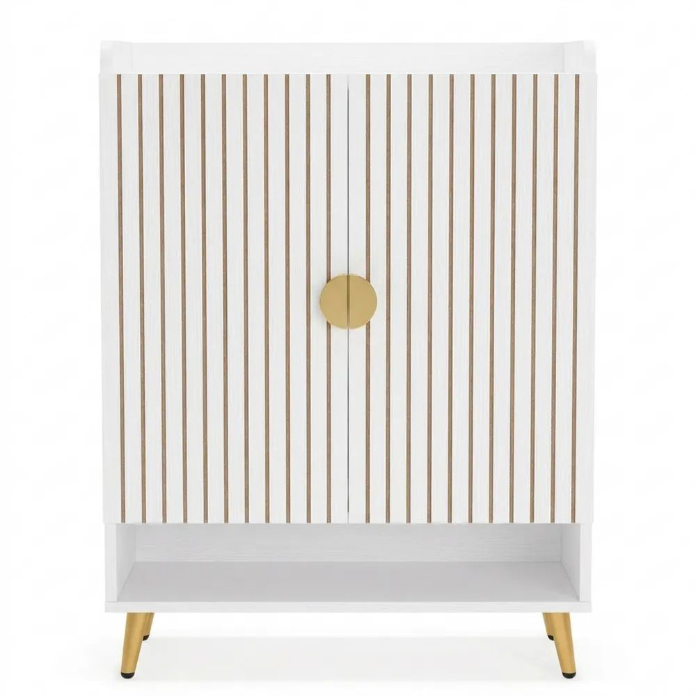 Schuhschrank aus Holzoptik mit Metallgestell und Türgriffen. Geeignet für Flur, Wohnzimmer, Schlafzimmer oder Badezimmer. Stauraum für bis zu 24 Paar Schuhe: Verstellbare Einlegeböden passen sich verschiedenen Schuhgrößen an, von High Heels bis Sneakern. Geschlossene Fächer und Abstellfläche oben bieten zusätzlichen Platz für Accessoires oder Dekoration. Funktioneller und kompakter Aufbau: Fünf Ebenen hinter den Türen bieten geschlossenen Stauraum und Ordnung. Schlankes Design (75x37x110 cm) hält viele Schuhe griffbereit, ohne viel Platz zu beanspruchen. Robuste Konstruktion: Aus MDF-Platten gefertigt. Griffe sind langlebig. Der Schrank steht stabil. Einfache Montage: Mit deutscher Anleitung und klar gekennzeichneten Teilen.