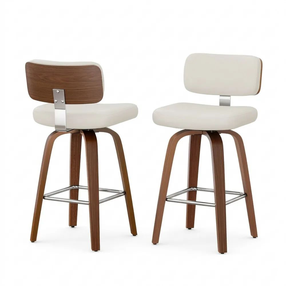 Verstellbarer Barhocker im 2er-Set, drehbar mit Rückenlehne, 67 cm Höhe, moderner Stil, Kunstledersitz, Holzbeine, ideal für Küche und Theke, Weiß